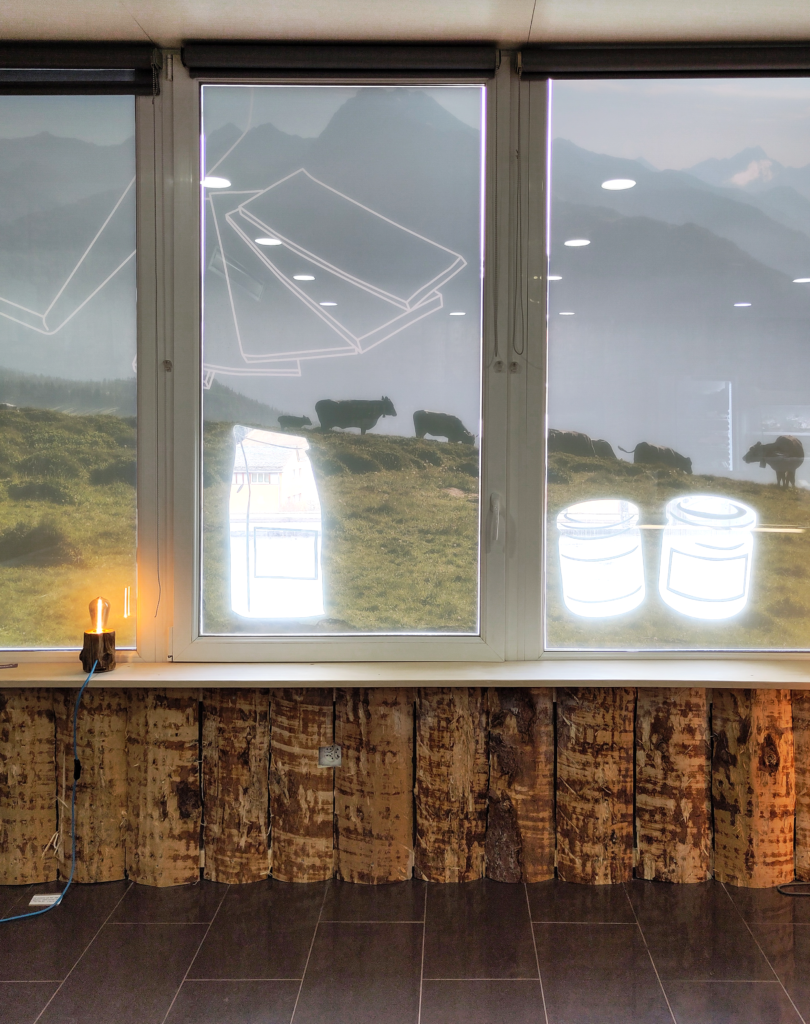 In Savognin eröffnete am 13. Februar 2026 die buteia regiunala. Zu entdecken gibt es hochwertige Produkte aus dem Parc Ela. Damit die Juwelen auch von weitem sichtbar sind, kombinierte ich für die Fensterfassaden Bilder aus dem Parc Ela mit feingliedrigen Produkt- und Tier-Illustrationen.